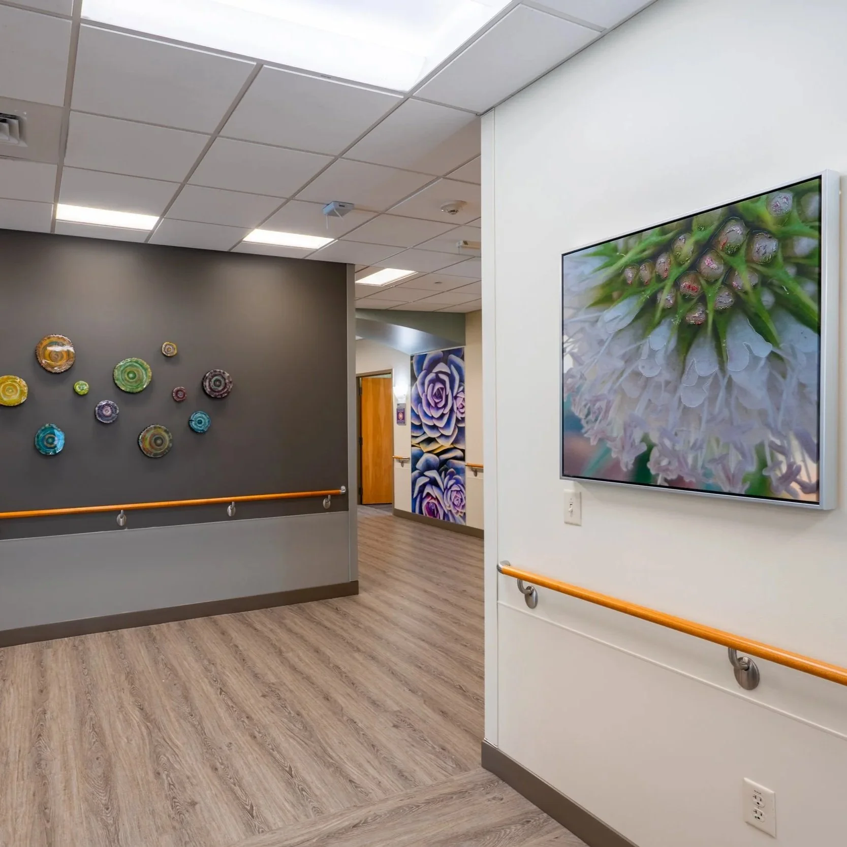Art in a healthcare setting has been proven to reduce anxiety, and promote healing. We use art to provide wayfinding, distraction, motivation, or inspiration for your clients and employees.